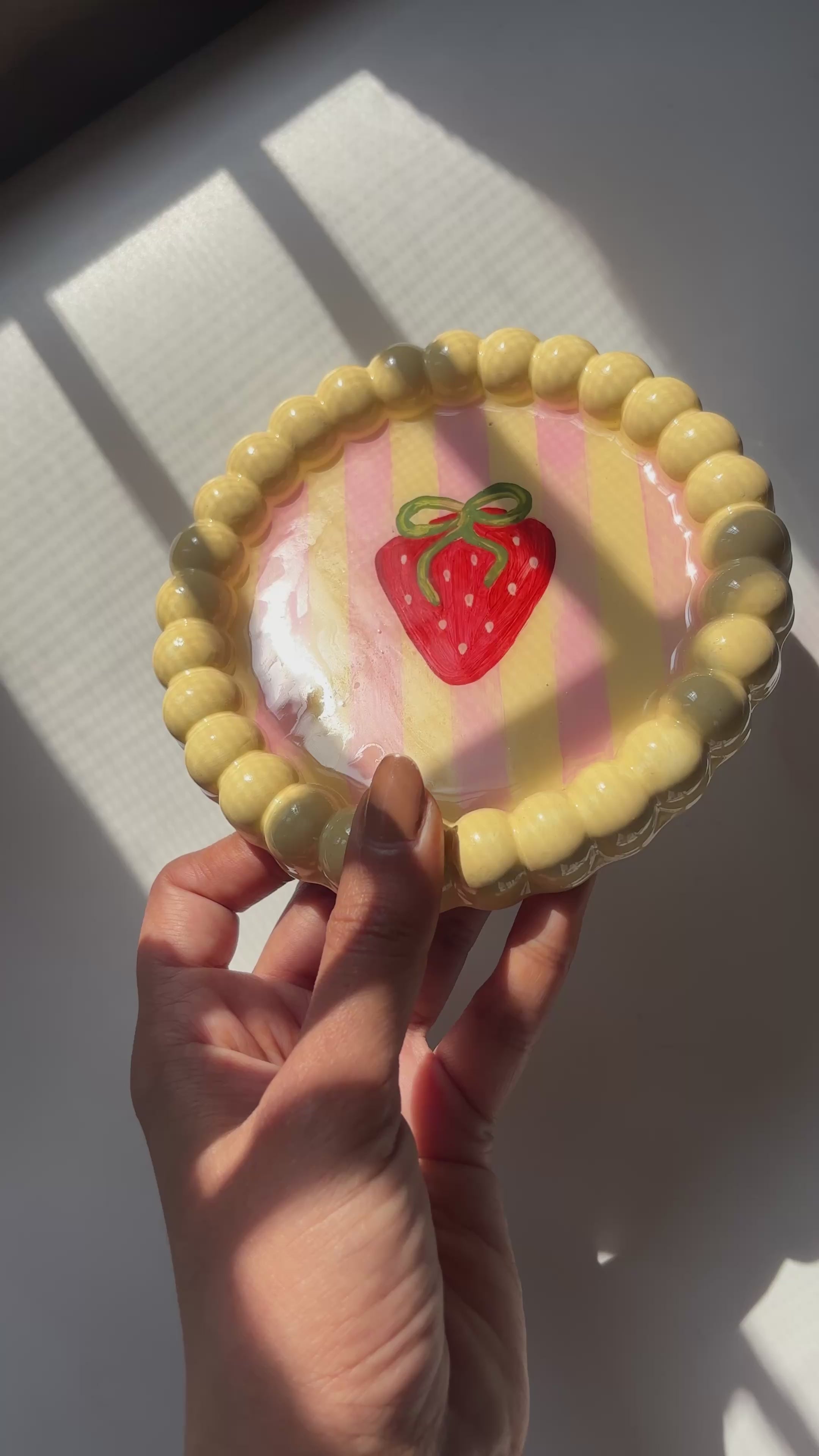 Sweet and summery. Hand-painted strawberries meet playful stripes for that fresh, fun energy you didn't know your space was missing.
